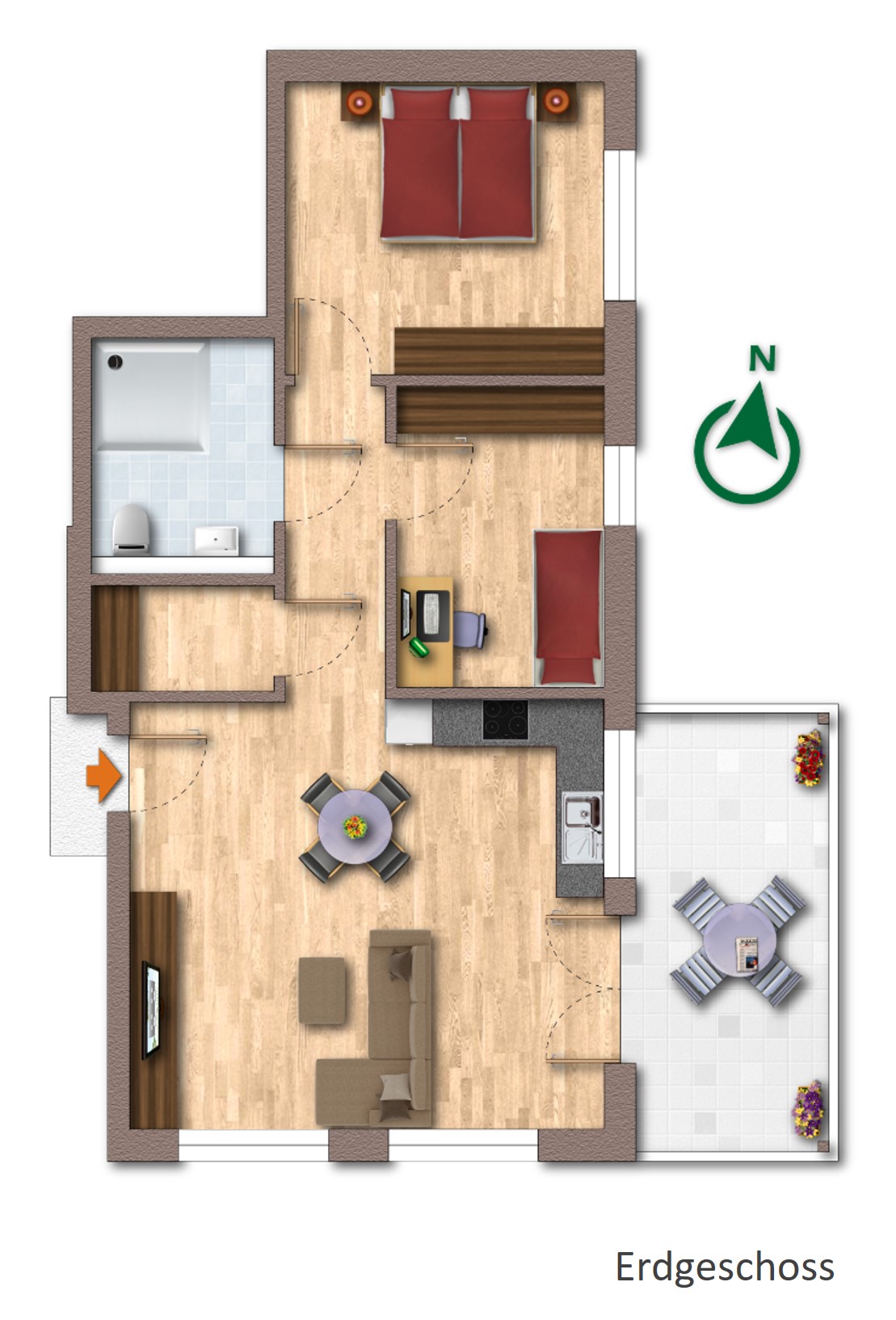 - Terrasse oder Balkon: Ja