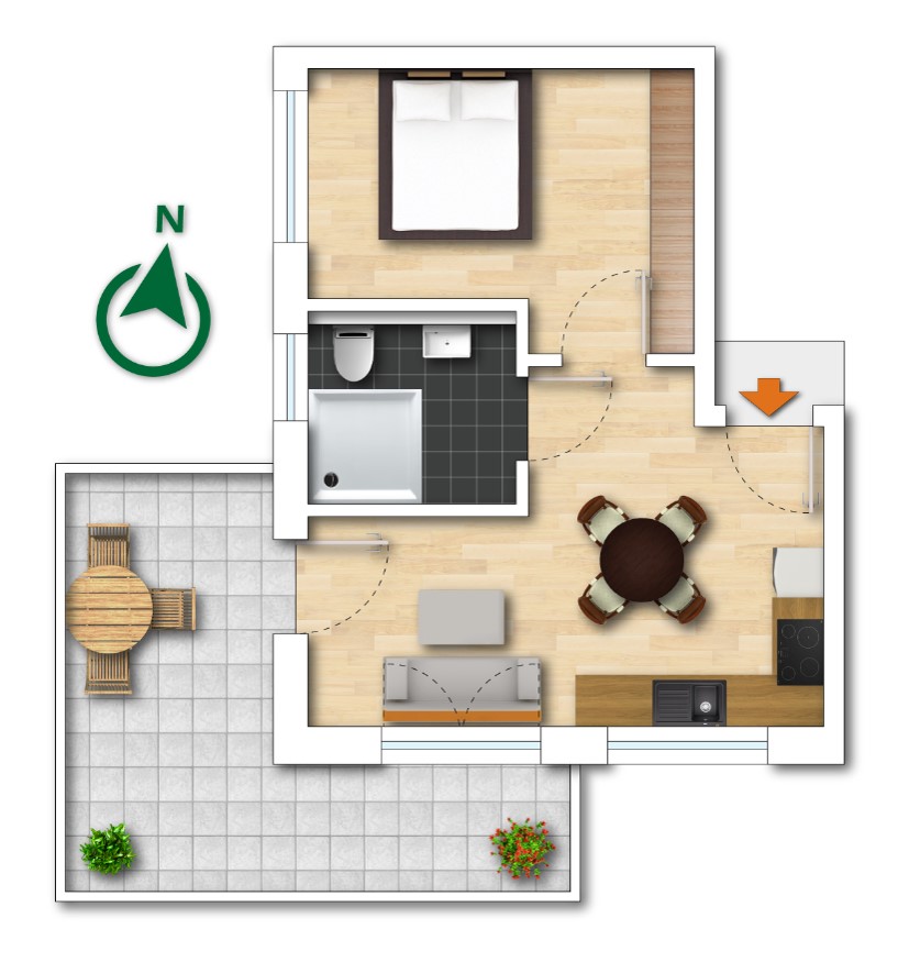 | 03 | 2 | Erdgeschoss | 43,45 m² | Garten | Reserviert |