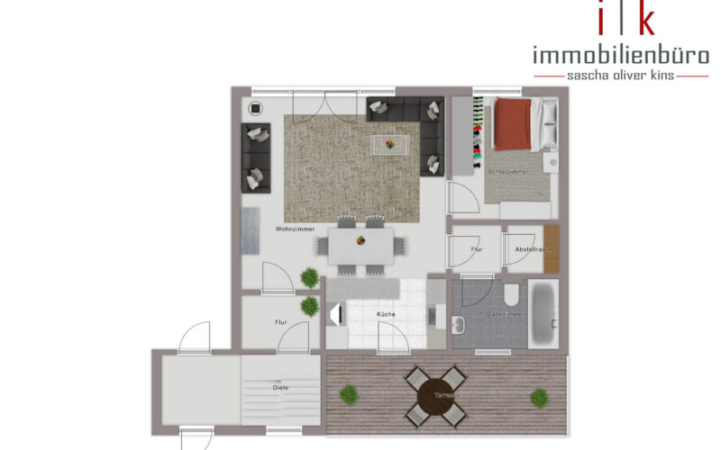 Die angebotene Wohnung überzeugt durch eine durchdachte Raumaufteilung und helle Wohnbereiche. Man betritt die Wohnung über eine Diele, die ausreichend Platz für Ihre Garderobe bietet und als Windfang dient.